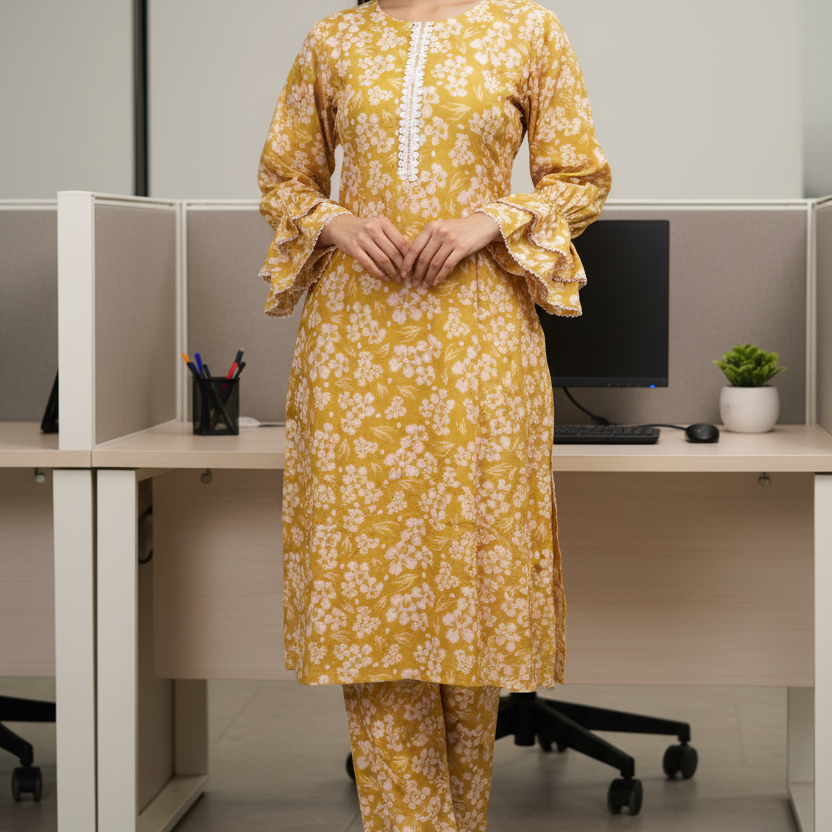 This structured Silk Maher 2PC - Kurti Set is Perfect for Everyday Office/Casual wear ensures effortless style and day-long comfort.